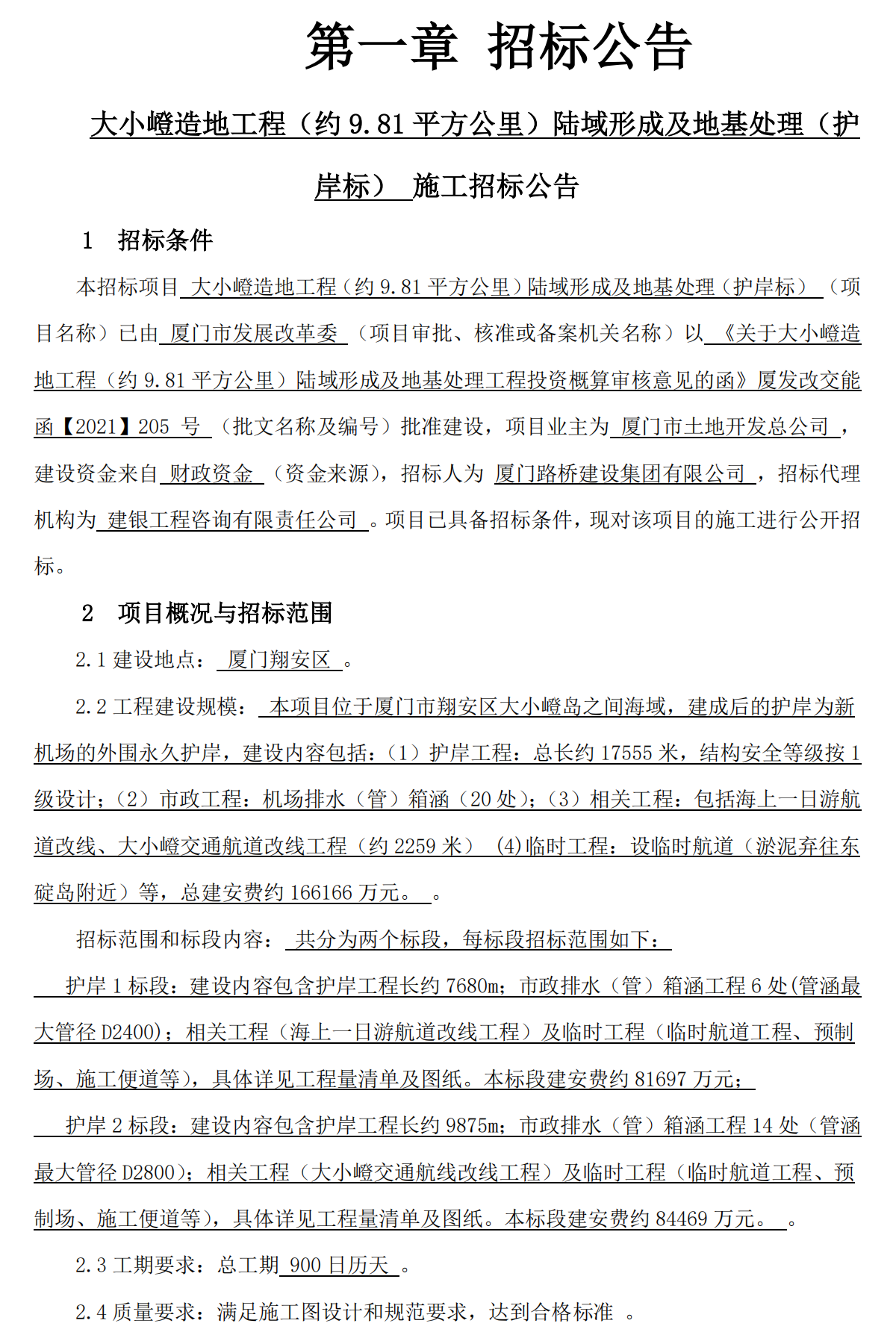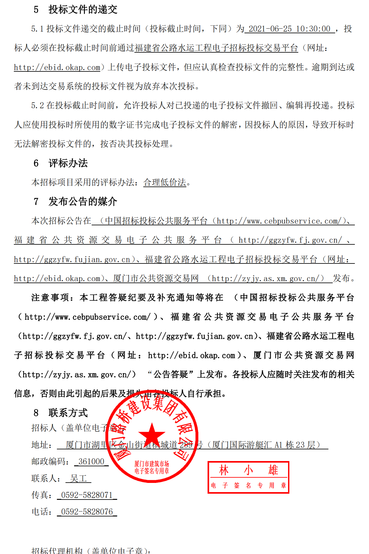 招標(biāo)人: 廈門路橋建設(shè)集團(tuán)有限公司